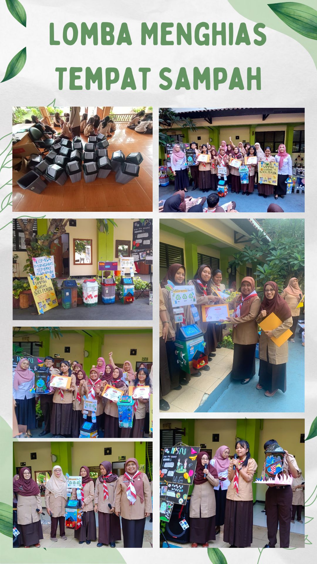 Kegiatan Lomba menghias tempat sampah dilaksanakan sebagai upaya media kampanye "Ekonomi Sirkular" sekaligus memperingati Hari Peduli Sampah Nasional . Ada 3 kelas yang dipilih sebagai pemenang lomba menghias tempat sampah, penilaian didasari pada aspek kegunaan, keindahan, dan kelengkapan kode untuk memilah sampah.